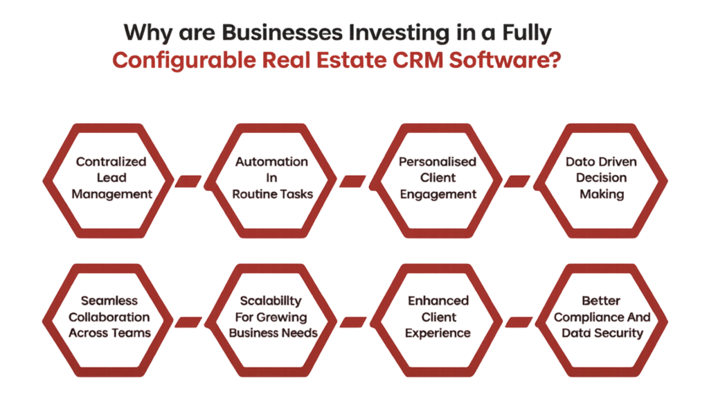 Real estate agents are investing in configurable CRM software to handle large lead volumes, improve response times, automate routine tasks, and deliver personalized customer experiences. The ability to customize the CRM as the business grows makes it a long-term solution rather than a short-term tool.